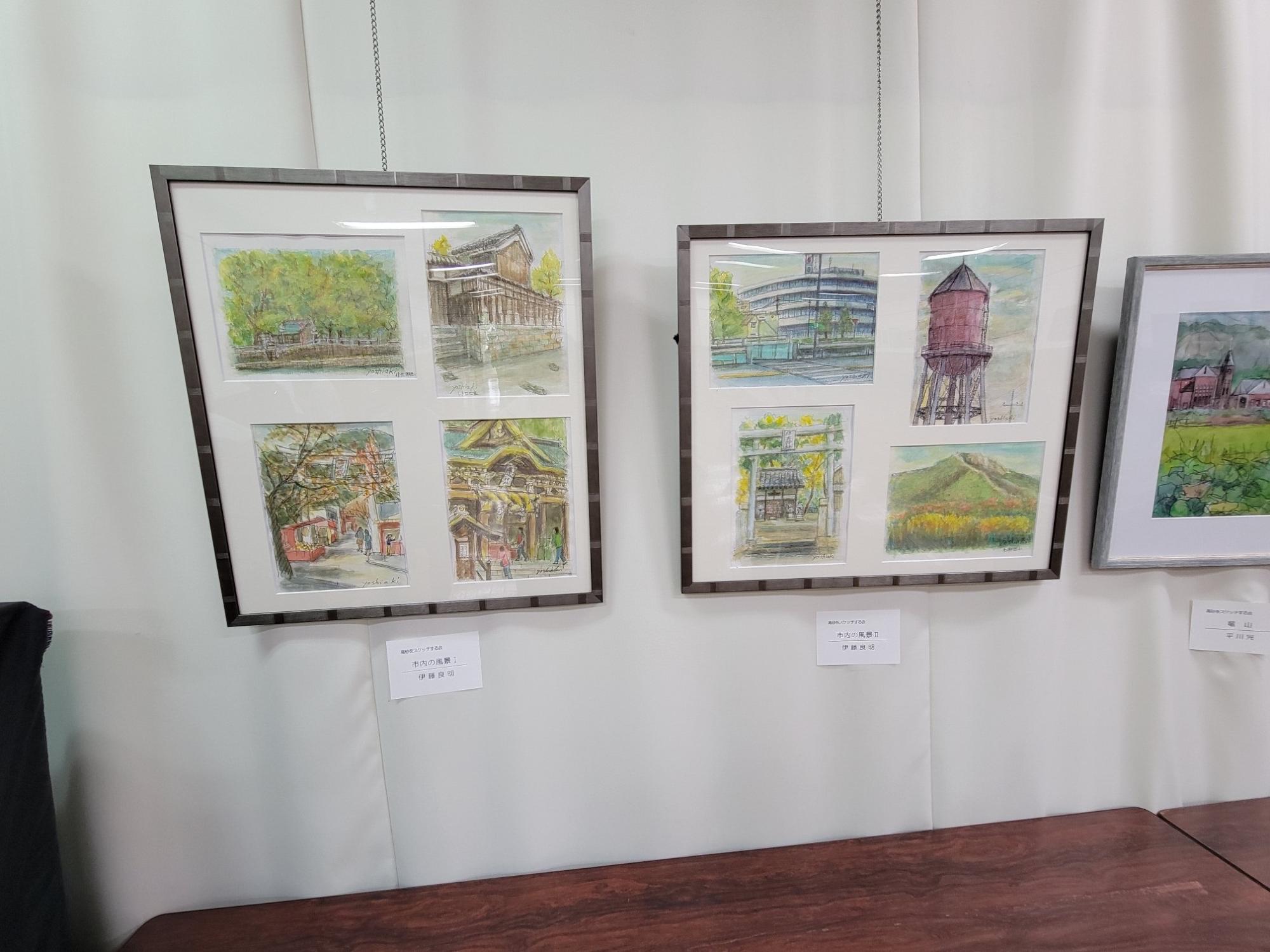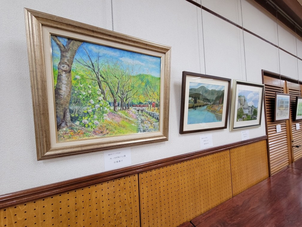 風景や高砂に関係のある内容をモチーフとして描いた作品の展示