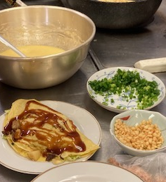 ホットプレートでうすく焼いたもちもちの皮であんこを包むのを高砂いずみ会の皆さんに教えて頂きました。