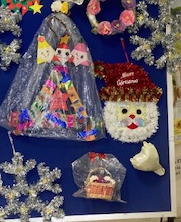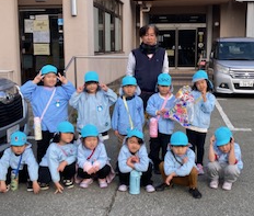 令和7年12月17日中筋こども園の園児のみなさんが、なかすじ交流センターまつりの展示のお礼に、可愛い手作りのクリスマスツリーを届けてくれました。センターは華やかなクリスマスの装いとなりました。素敵なツリーをありがとうございました。