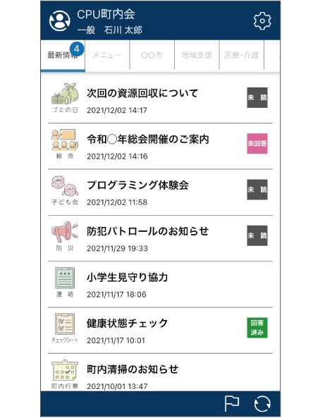 回覧板やお知らせのデジタル配信、アンケート機能、安否確認機能などを備えており、従来の紙媒体による情報伝達と比べて、迅速かつ確実な情報共有が可能となります。