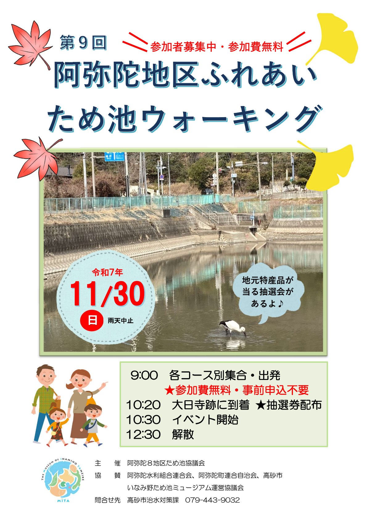 11月30日(日曜日)に、第9回阿弥陀ふれあいため池ウォーキングが開催されます。