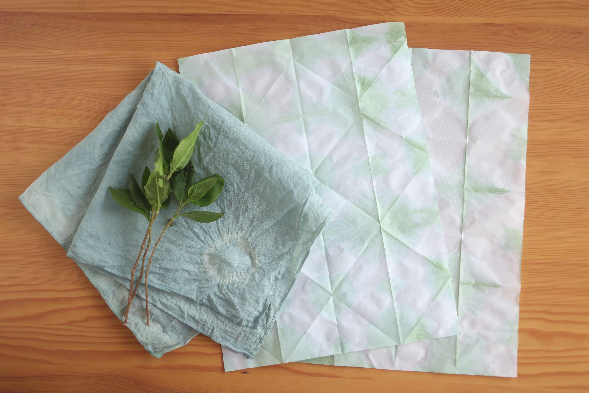 屋上庭園のタデアイを使う、生葉染めと折染