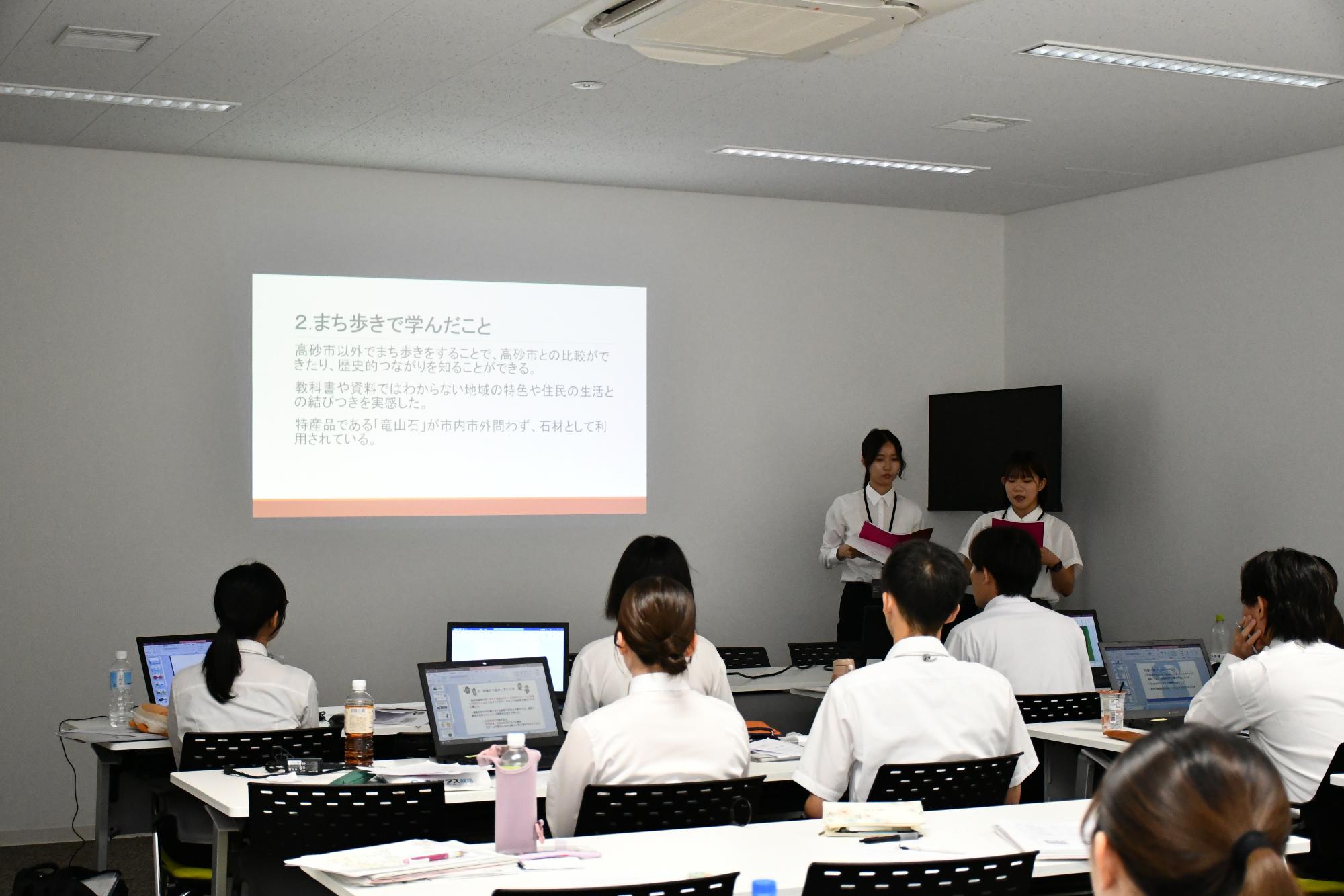 社会教育や生涯学習についての座学、まち歩き、図書館訪問等行いました。このコースでは他市にも赴いたため、「高砂市にしかない特色や歴史を知ることができた」、「 教科書や資料ではわからない地域の特色や住民の生活との結びつきを実感した」等の声がありました。