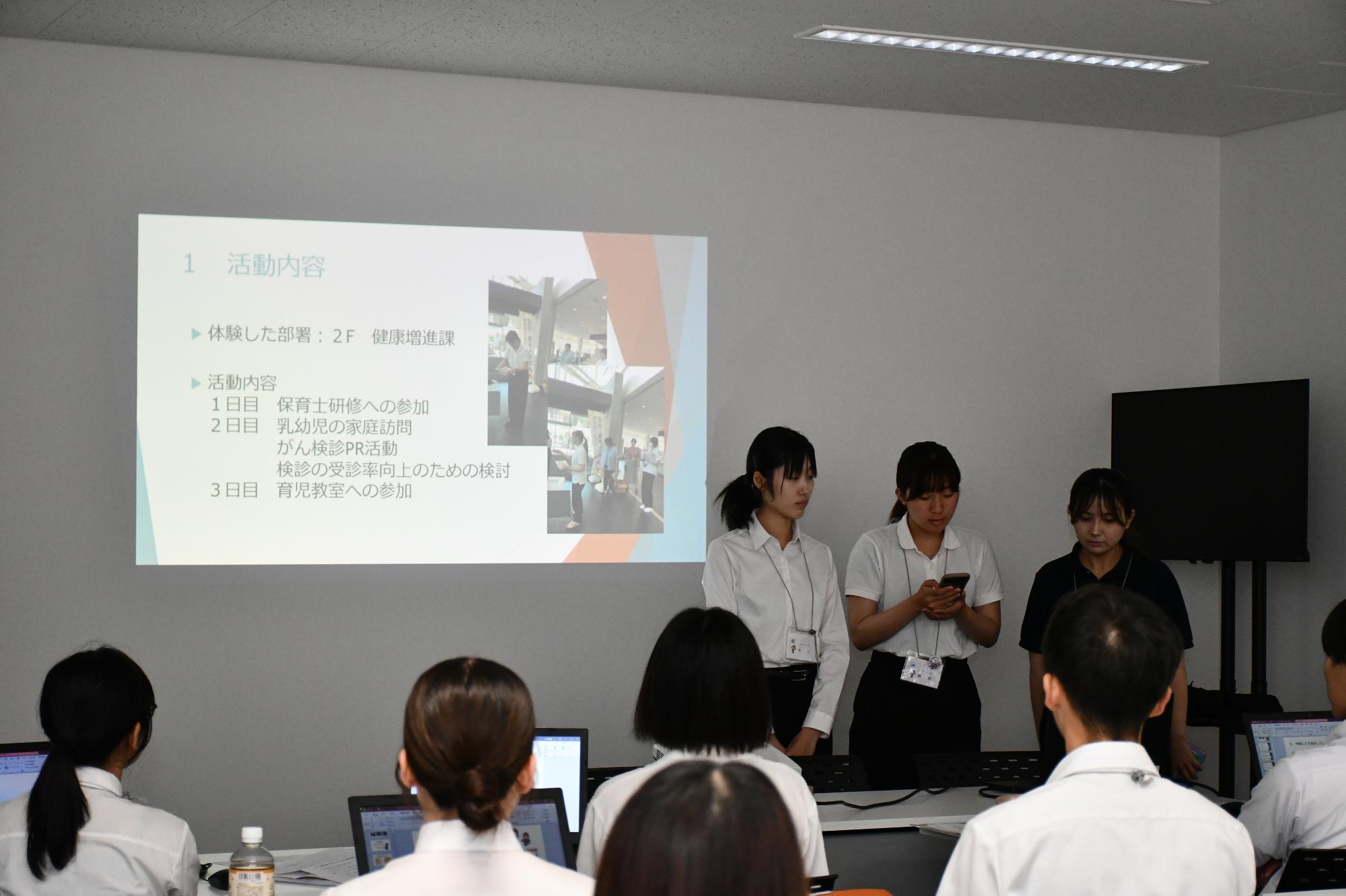 受入れ先の職員が後ろで発表を聞いている中、インターンシップ生は始終緊張している様子でしたが、「学んだこと」、「印象に残ったエピソード」、「今後にどう活かしていくか」について発表してくれました!