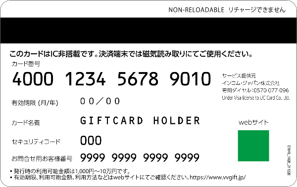 店頭で使用する場合、本カードは磁気ストライプで読み取ります。(ICチップはついていません。)専用端末にスライドさせてください。