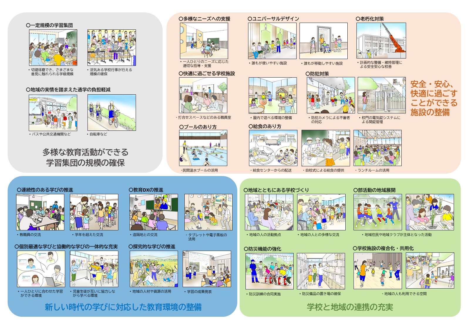 - 小学校及び中学校の再編にあたっては、各々の学校規模を確保した上で、小中一貫教育の推進が図れるよう検討する