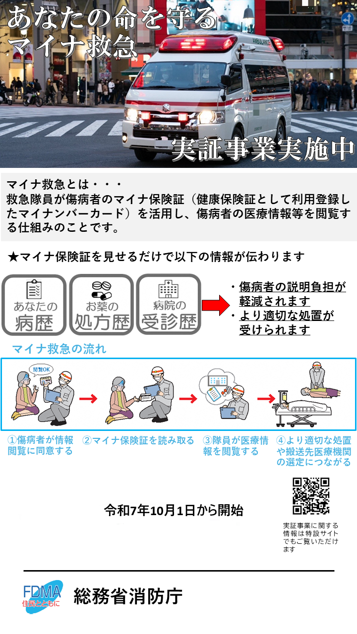 令和7年10月1日から「マイナ救急」実証事業が開始!