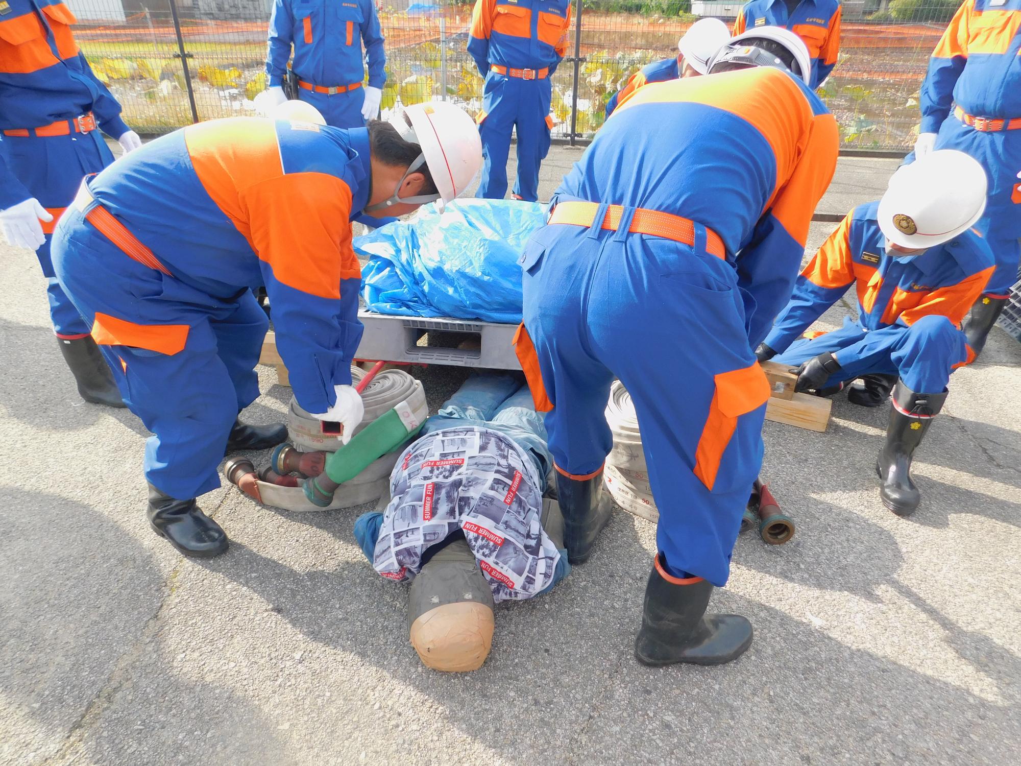 大規模災害を想定し、身の回りの救える命を救う、身の回りの被害を最小限に抑える』という『自助、共助』の部分を主眼に置き、訓練を実施しました。今後、南海トラフ巨大地震等の大災害が予想されます。消防団員の災害対応能力の向上は当市の災害対策には非常に重要となります。今後もこのような大規模災害に対する訓練を実施し、災害が起きた時に最大限の力が発揮できるよう訓練を重ねていきます。