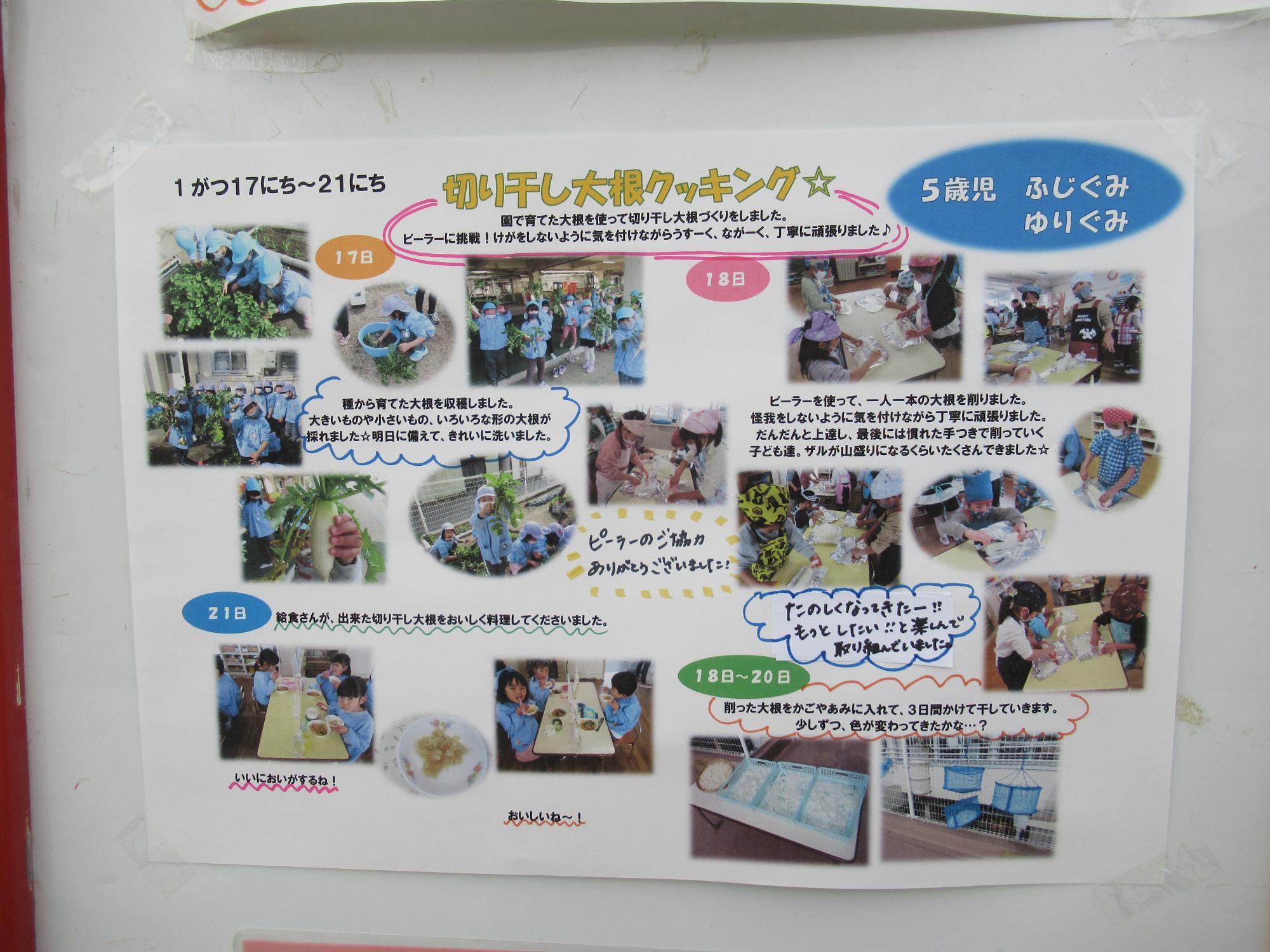 園で栽培した大根を収穫して、「切り干し大根」を作りました。