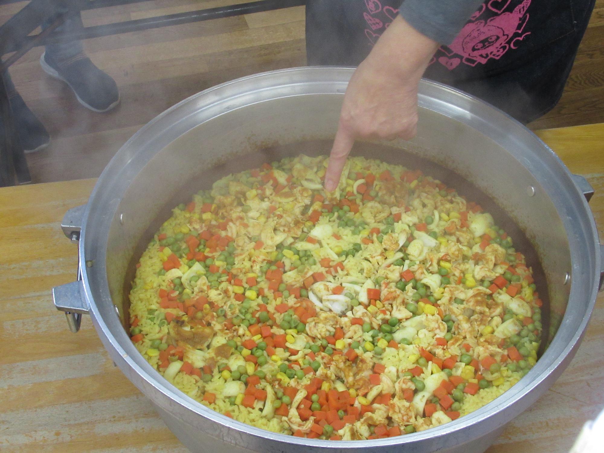 伊保漁港で捕れたイカ、エビを使ったピラフ!